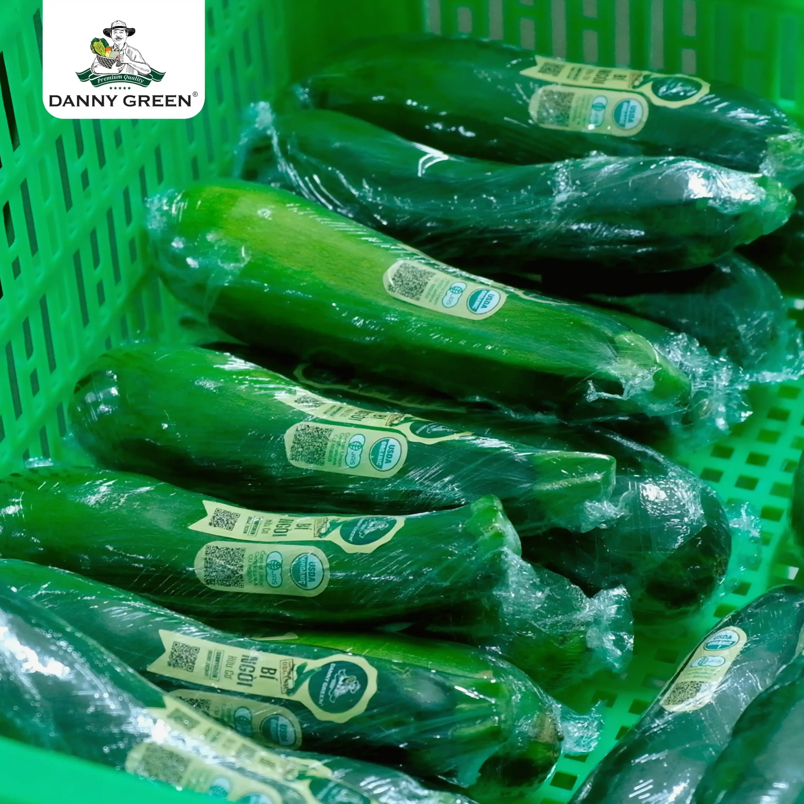Bí Ngòi Hữu Cơ DannyGreen được trồng và canh tác theo phương thức hữu cơ công nghệ cao tại Nông Trại Hữu Cơ DannyGreen, Việt Nam.