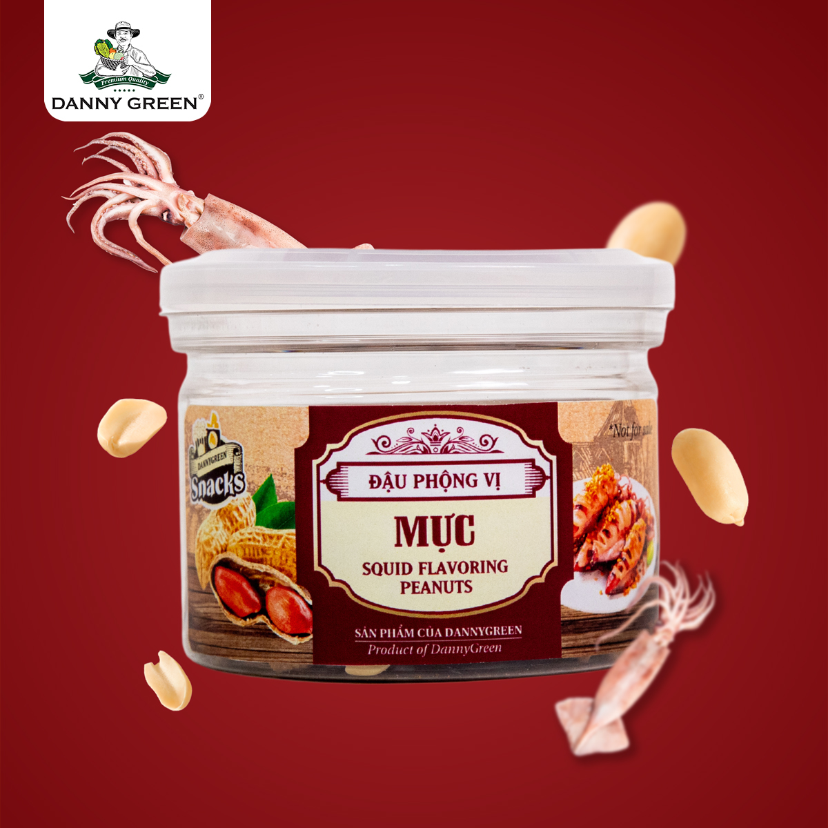 – Thành phần: Đậu phộng (82%), Mực (10%), Đường, Muối, Dầu thực vật, Tỏi, Chất điều vị (621).
