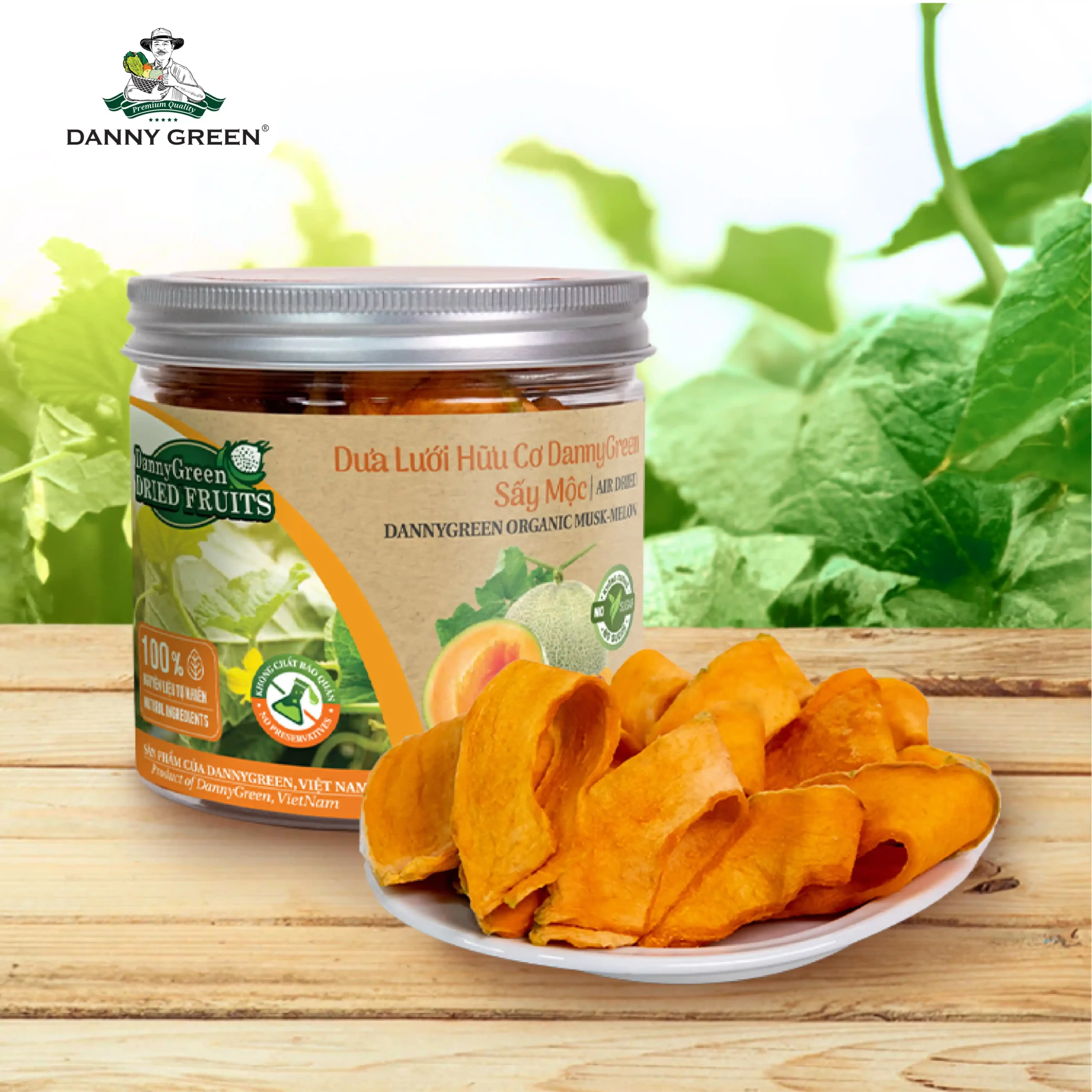Dưa Lưới Hữu Cơ DannyGreen Sấy Mộc được làm từ 100% Dưa Lưới Hữu Cơ DannyGreen, được sấy ở chậm để giữ lại hương vị tự nhiên và chất dinh dưỡng từ dưa lưới hữu cơ.