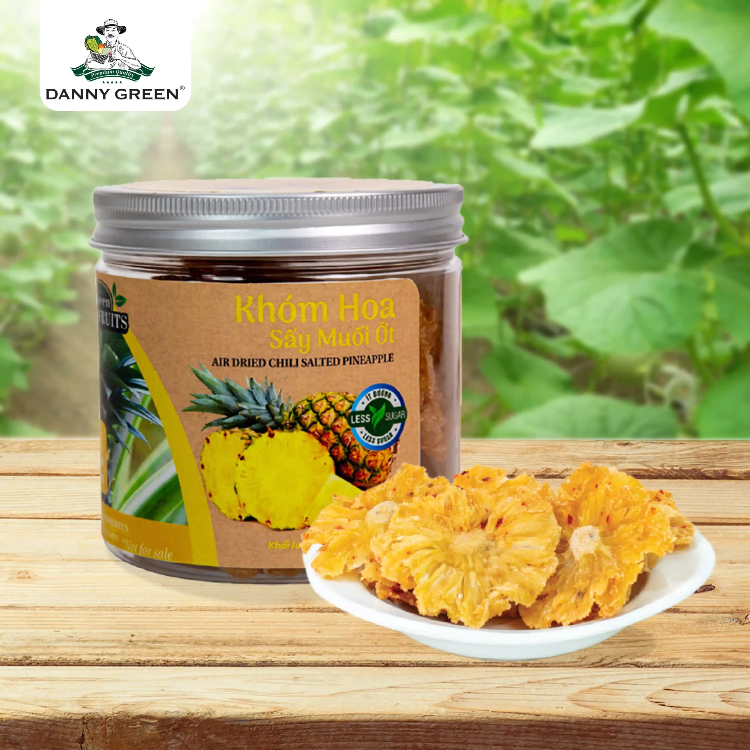 Với đặc điểm ít đường và không sử dụng chất bảo quản hay phẩm màu nhân tạo, Khóm Hoa Sấy Muối Ớt DannyGreen giữ nguyên độ tươi ngon tự nhiên