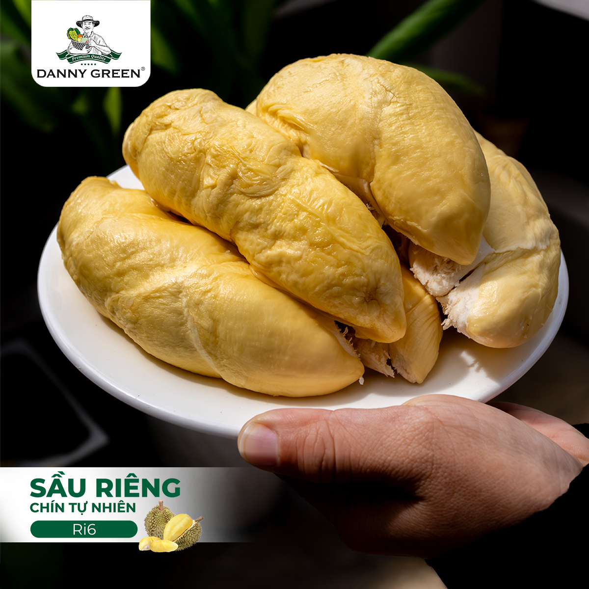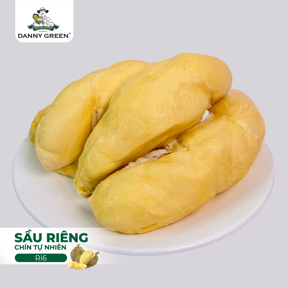 Sầu riêng Ri6 DannyGreen (Chín Tự Nhiên) là giống sầu riêng trứ danh được canh tác tại Nông Trại DannyGreen, Việt Nam. Sầu riêng Ri6 DannyGreen được thu hoạch với độ già đạt hơn 85% và để chín tự nhiên, không ngâm thuốc, đảm bảo an toàn cho người tiêu dùng.