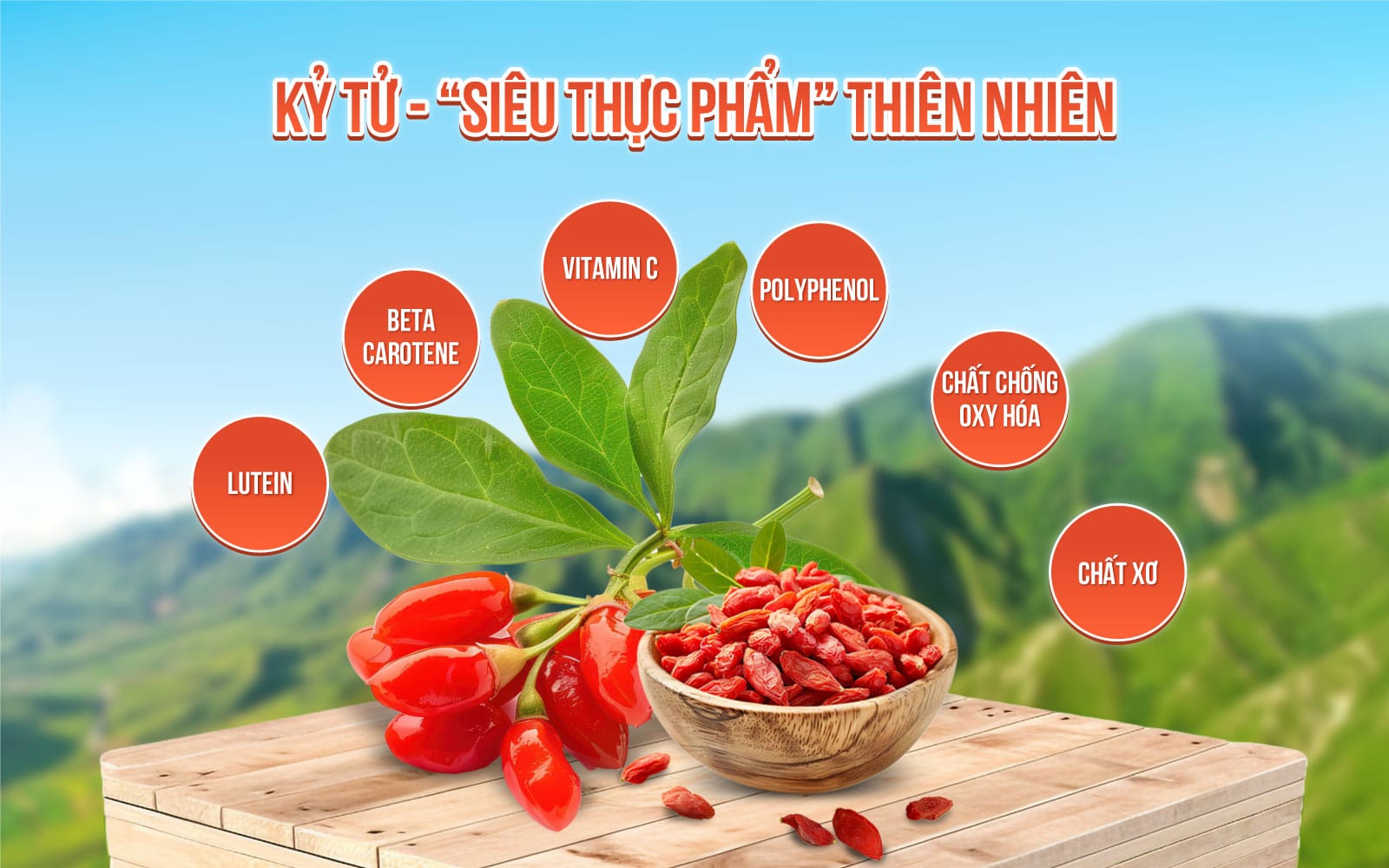 Kỷ tử không chỉ là một dược liệu mà còn được xem như một “siêu thực phẩm” nhờ vào bảng thành phần dinh dưỡng ấn tượng:
