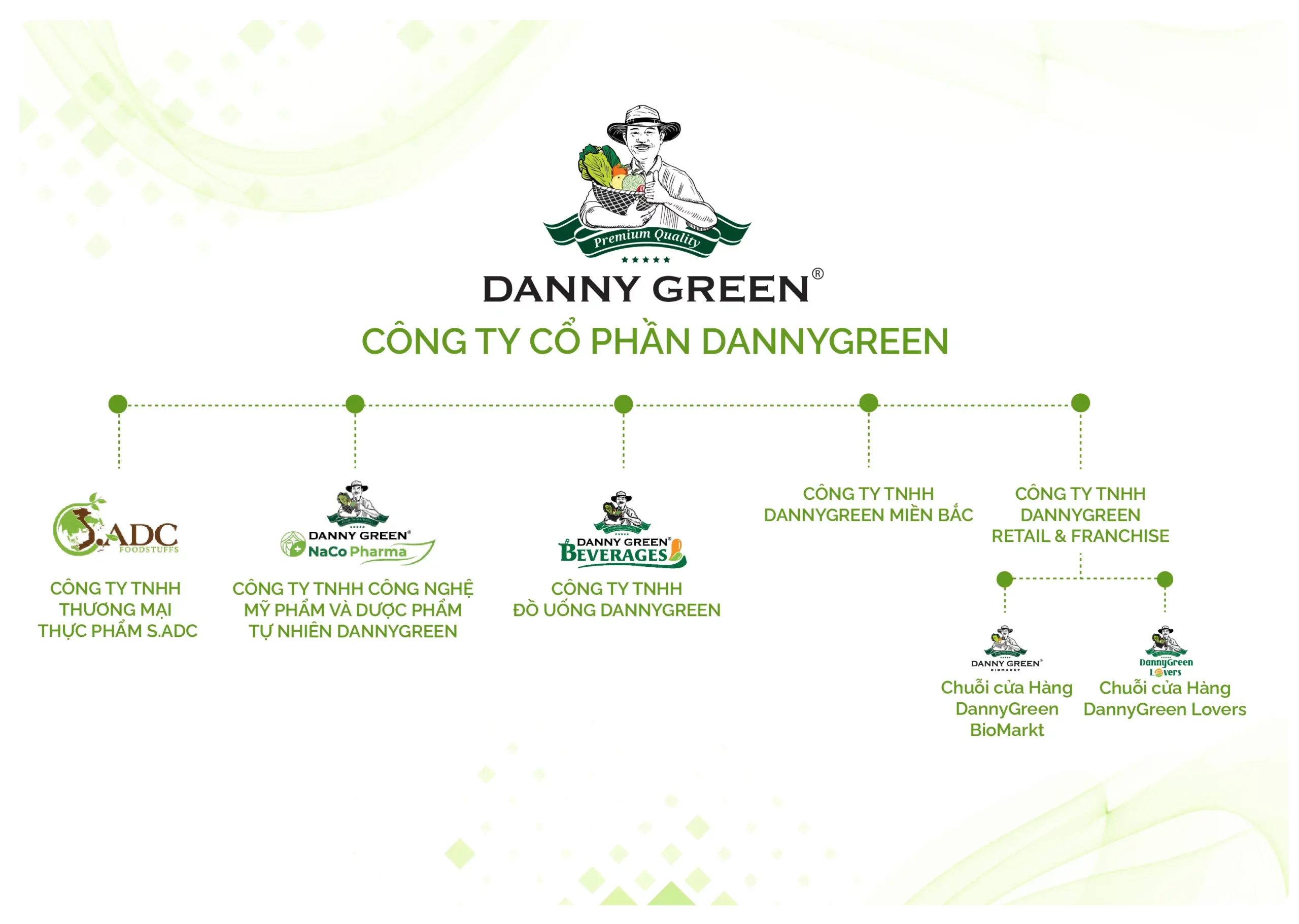 Tầm nhìn của DannyGreen là trở thành một trong những thương hiệu uy tín hàng đầu về sản xuất và phân phối các sản phẩm nông sản, thực phẩm trên thị trường Việt Nam và quốc tế.